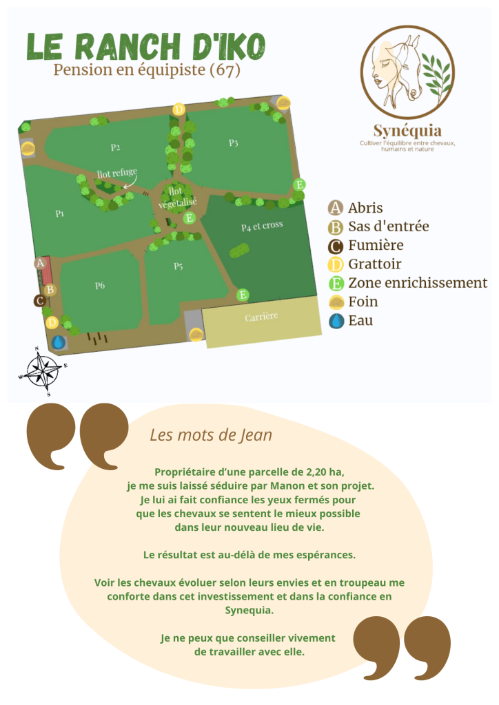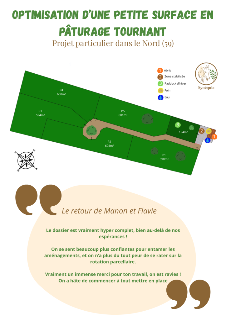 - un dossier comprenant : le plan à l’échelle, les explications avec choix des matériaux, des conseils sur la gestion du pâturage et des propositions de végétalisation